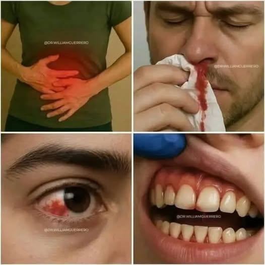 Symptoms like those illustrated in the image—though common—should not be ignored if they persist or worsen. Abdominal pain, nosebleeds, red eyes, and bleeding gums may indicate conditions ranging from mild to serious. The key is to monitor symptoms carefully and consult qualified healthcare professionals rather than rely on speculation or misinformation.